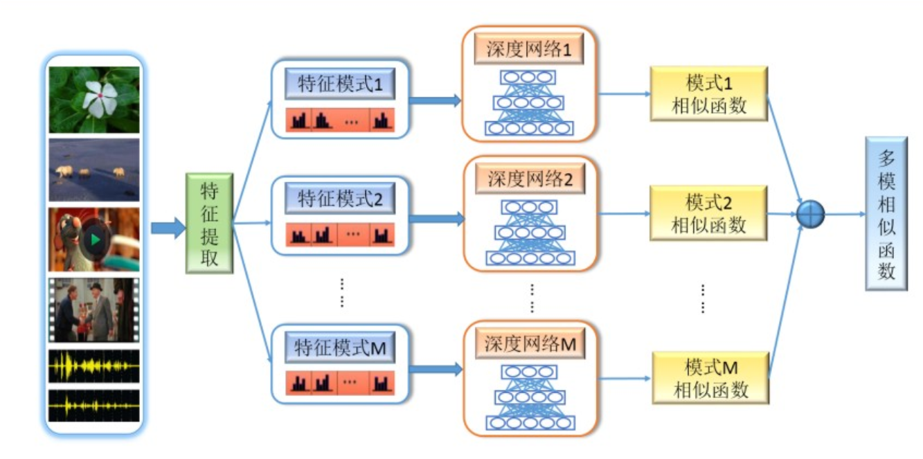 针对媒体数据特征的多样性,利用深度学习模型,构建基于多模特征的深度相似函数学习方法。该方法结合多深神经网络,融合多模特征信息,有效解决媒体数据样本相似性度量的问题。